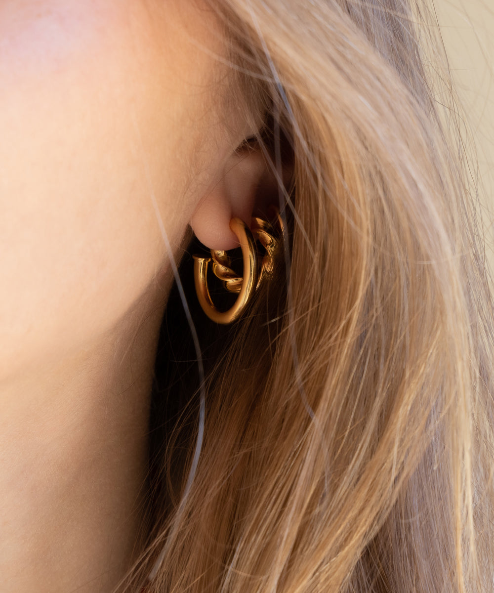 Plain Hoops er enkle, klassiske øreringer i forgylt sølv. Formen er minimalistisk og elegant og perfekt i kombinasjon med andre øreringer dersom du har flere hull i øret.